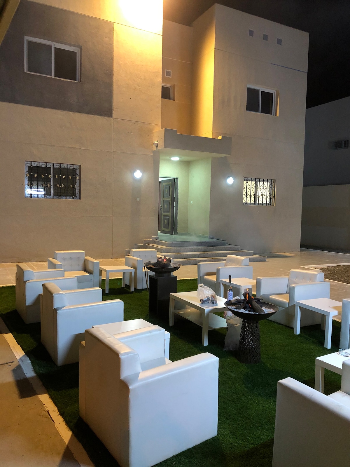 * Disfruta de la tranquilidad y la relajación en compañía de tu familia * Al alojarte en este alojamiento de diseño clásico y muy cerca del Aeropuerto Internacional de Tabuk, a solo 5 minutos. * El alojamiento tiene dos dormitorios, dos baños, cocina y un televisor inteligente de 65 pulgadas para ver las mejores películas y partidos en Netflix y Shahid. * Disposición de las camas * Una cama doble grande y especial, así como dos camas individuales. Hay servicio de transporte de equipaje gratuito, así como aparcamiento gratuito frente al edificio. Hay una cocina completa con mesa de comedor y cafetera americana. ^ (Ofrecemos la función de entrada automática) ^