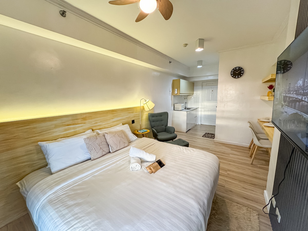¿Por qué quedarte con nosotros? Configuración de cine en 🎬 casa 🚙 Estacionamiento 300 por noche solamente 🔥Ubicación privilegiada: muy accesible con solo cruzar AyalaMall Serin, cerca del transporte público. Unidad de estudio 🤩 bien diseñada, acogedora y cómoda: perfecta para familias de 4 personas 🏔Taal Viewing Deck 🍳 Cocina totalmente equipada: utensilios de cocina completos Internet 🚀 de alta velocidad 🎱 Excelentes instalaciones y actividades: acceso a billar, dardos, sala de juegos, tenis de mesa,gimnasio, terraza del jardín, terraza de observación Taal y sendero para correr en el primer piso. 🌅Un retiro tranquilo