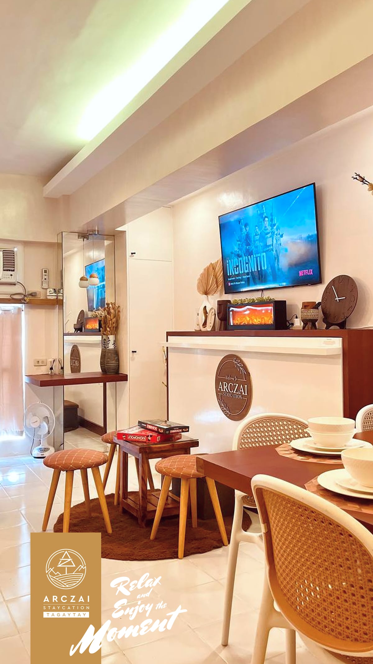 Encontrarás comodidad y relajación en una acogedora sala de vacaciones bien diseñada organizada por Arczai Staycation. Nuestros huéspedes a menudo elogian estas características: Interior ✅bien diseñado ✅Balcón con vistas impresionantes a la cordillera de Tagaytay y al lago Taal Ventanas ✅orientadas al este que invitan al sol de la mañana y la brisa fresca ✅Espacioso (unidad de 33 metros cuadrados) ✅Ubicación conveniente con centros comerciales, bancos, restaurantes, establecimientos comerciales y acceso al transporte público cercano.