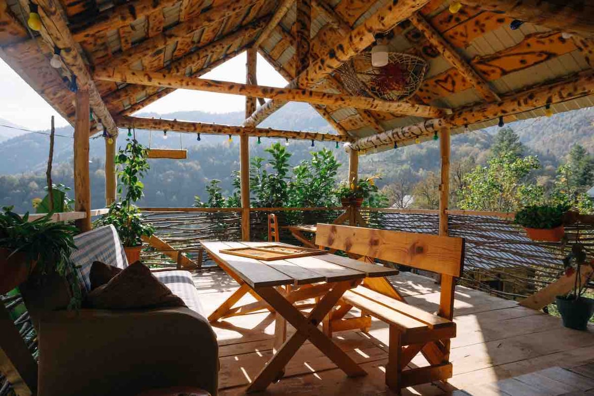Relájate solo, con toda la familia o un grupo de amigos en este alojamiento tranquilo, disfruta del tiempo con tus hermanos, amigos o medita en tu propio mundo. Aislada, con techos altos. La cabaña es única para sumergirte en tu zona de confort con vistas increíbles del área protegida de la montañosa Adjara, a solo 45 minutos de Batumi, con una elevación de 450 metros. Perfecta para parejas o parejas con niños, además de una antigua casa de madera tipo albergue junto a la casa de campo con algunas camas adicionales.