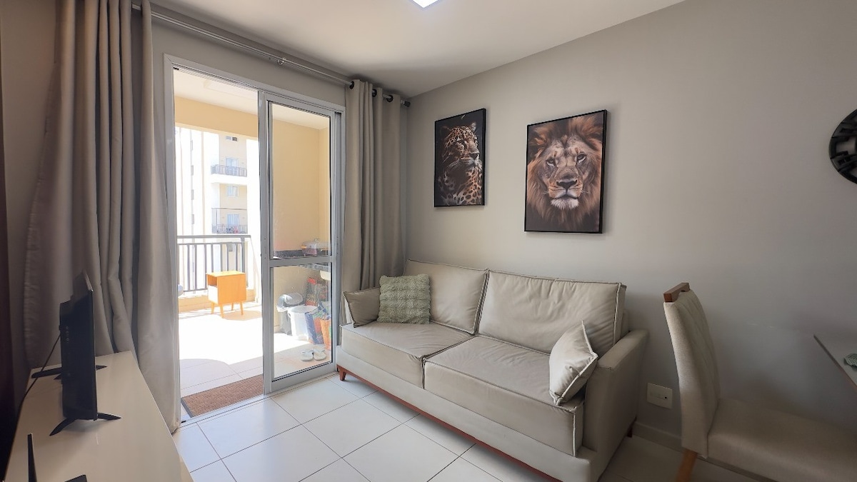 Traé a toda la familia a un condominio tipo club, con mucho espacio para divertirse en las piscinas climatizadas y cubiertas y en la piscina de playa. Tenemos un espacio de garaje cubierto. Departamento con 2 dormitorios, uno de ellos en suite con aire acondicionado, y otro baño social. Hay dos camas de dos plazas y un living con una cama nido y cortinas opacas. Pueden dejar sus maletas y esperar en la sala de espera o usar el área común antes del check-in. Barrio: Águas Claras, una ciudad nueva y segura con muchas opciones de restaurantes
