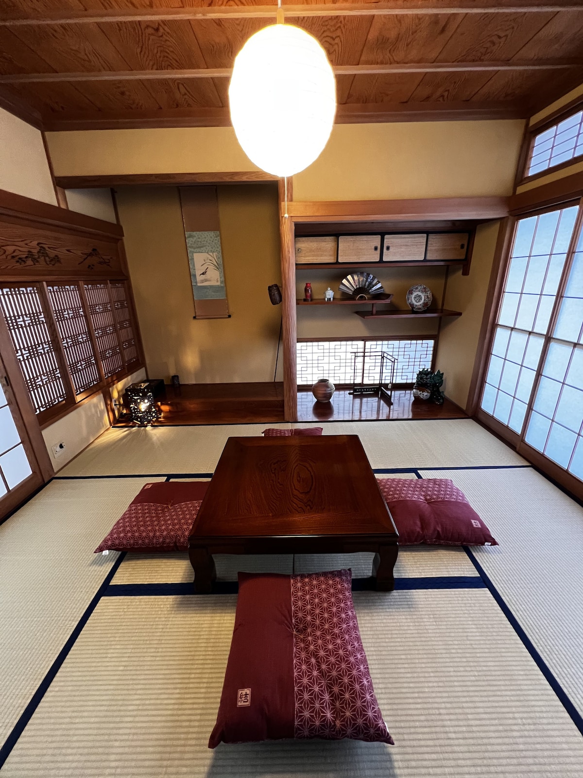 Es una estancia en una casa privada en una zona residencial tranquila. Una artista de unos 60 años y dos gatos viven en una casa de estilo japonés. Eres bienvenido como miembro de la familia, así que podemos cocinar y charlar juntos. Si quieres, puedo ayudarte con hacer turismo, ponerte un kimono y crear arte con papel japonés. También puedes disfrutar del paisaje nevado y de las aguas termales naturales en invierno. Si podemos cocinar juntos, se servirá el desayuno. Espero que puedas tener una estancia única en Japón.