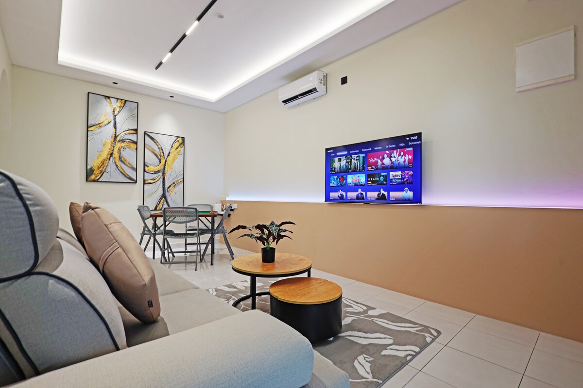 NEW Condo Near Mount Austin, IKEA, & Toppen. Escape to our stylish, Moderm Minimalist inspired 2BR condo on the 33rd floor in Johor Bahru. Perfect for families, couples, or business travelers, with HD Projector, Netflix, hi 5g WiFi, a kitchen, and 2 dedicated free car park slots with easy access. Near the vibrant food district of Mount Austin. Enjoy convenient access to various restaurants, cafes, and local eateries, all just minutes away.