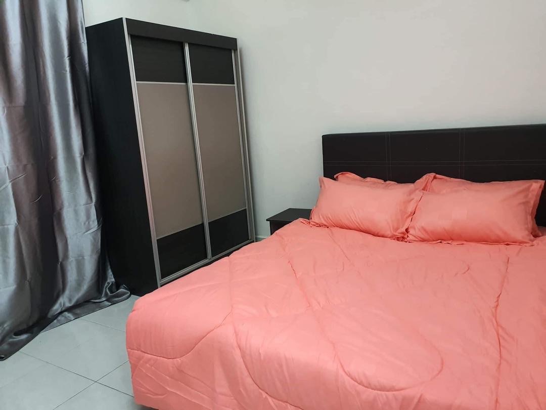 Presint 8, Putrajaya (3 dormitorios y 2 baños) Un acogedor apartamento moderno ideal para una familia de 5 personas. Dormitorio principal (cama tamaño queen, aire acondicionado, baño). Habitación 2 (cama individual, cama individual extraíble). Bilik 3 (cama individual). Sala de estar (aire acondicionado, Smart TV, baño). Cocina totalmente equipada. Se proporciona plancha. Instalaciones: Piscina Parque infantil Aparcamiento: 2 plazas Lugares de interés cercanos: Ayer 8: 5 minutos a pie Hospital Putrajaya, IJN: 7 minutos en coche Masjid Putra, PICC - 8 minutos en coche Centro comercial IOI: 15 minutos en coche