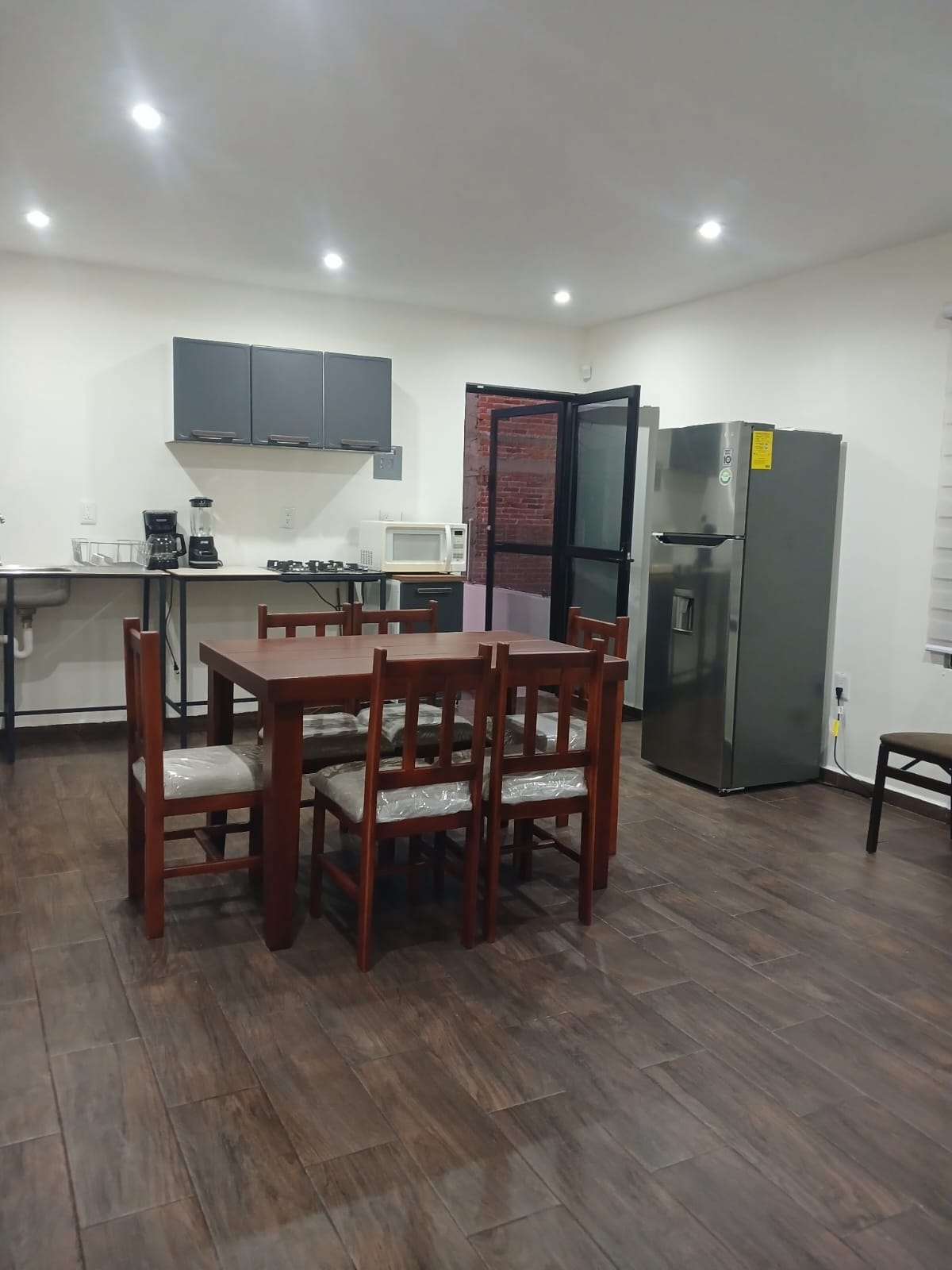 HERMOSO DEPARTAMENTO, AMPLIO, COMODO, SIN ESCALERAS. SOLO PARA AUTOS MEDIANOS. GRAN CLASE Y ESTILO TOTALMENTE EQUIPADO. CONSTA DE UNA AMPLIA RECAMARA CON ESPACIO PARA TRABAJAR EN TU COMPUTADORA, WIFI, PANTALLA, BAÑO COMPLETO PRIVADO Y UN AMPLIO VESTIDOR. SALA CON SOFA CAMA, COMEDOR Y COCINA EQUIPADA CON CAFETERA, TOSTADOR, LICUADORA ETC. 1 MEDIO BAÑO. ADEMAS DE UNA PEQUEÑA Y MUY AGRADABLE TERRAZA, Y COCHERA CON PORTON ELECTRICO PARA AUTO MEDIANO.