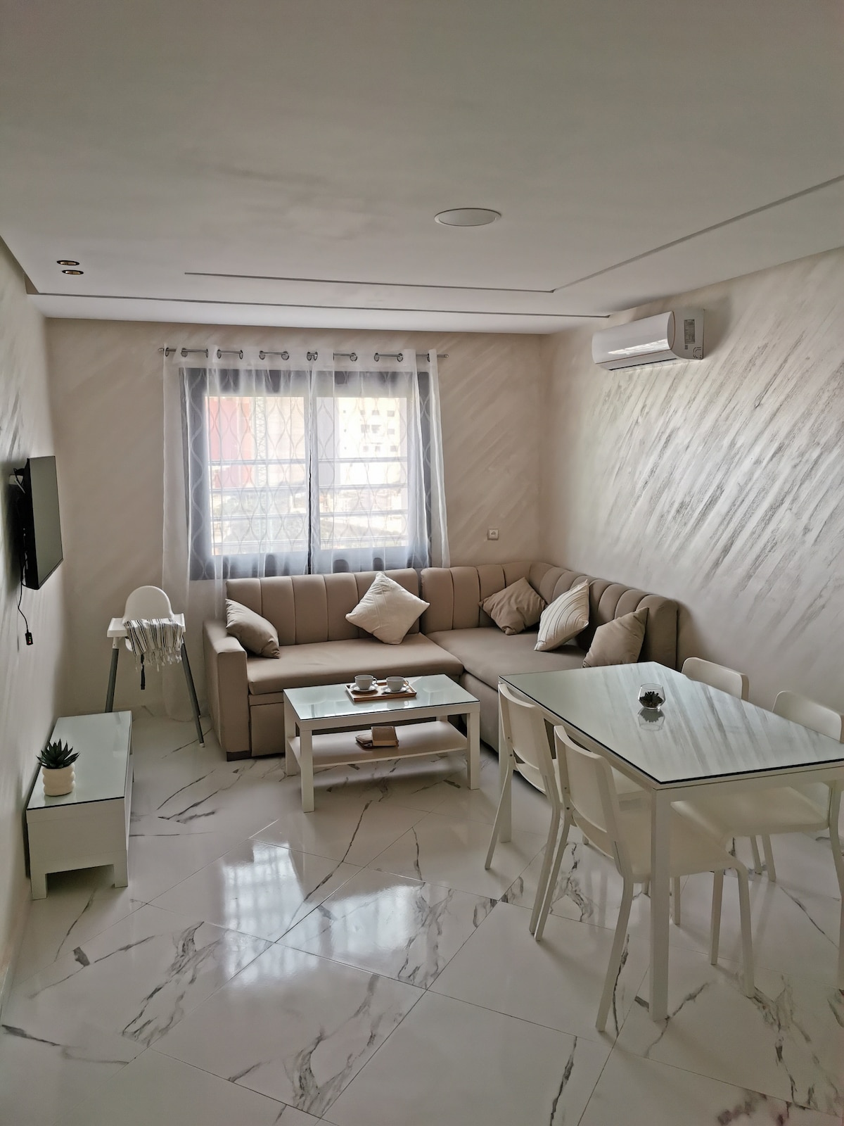 ☁️ Le Doux Nuage de Tanger – Un refugio acogedor pensado para familias. Un apartamento cálido y tranquilo donde la luz suave y el ambiente relajante hacen que te sientas bien desde el primer momento. Ubicado en una residencia cerrada con seguridad 24/7, a un paso del Grand Marjane, playas y centro. Ideal para desconectar y disfrutar: mañanas tranquilas, tardes agradables y niños jugando con total seguridad. Un verdadero hogar para compartir.