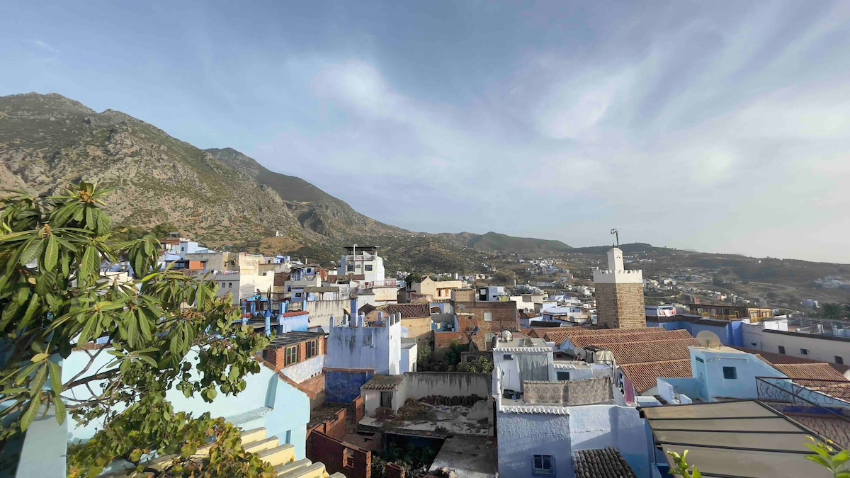 Experimenta la serenidad en nuestra habitación con terraza con vistas a la ciudad azul y las montañas. Relájate en este tranquilo oasis con impresionantes vistas a la ciudad. Disfruta de las comodidades modernas en un entorno tradicional marroquí. Perfecto para un refugio tranquilo durante tu estancia en Chefchaouen. Muy adecuado para parejas