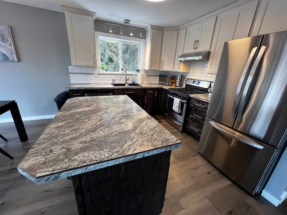 Nothing beats relaxing in the hot tub after a day filled with adventures! This cozy little secondary suite is located on a quiet street minutes from downtown, trails, beaches, and all amenities. The kitchenette is well appointed with various supplies and essentials. On the other side of the room is a comfortable queen bed with fresh linens and plenty of pillows. Also included in the suite are a well stocked 3-piece bathroom, a dining set, a small closet, and a smartTV!