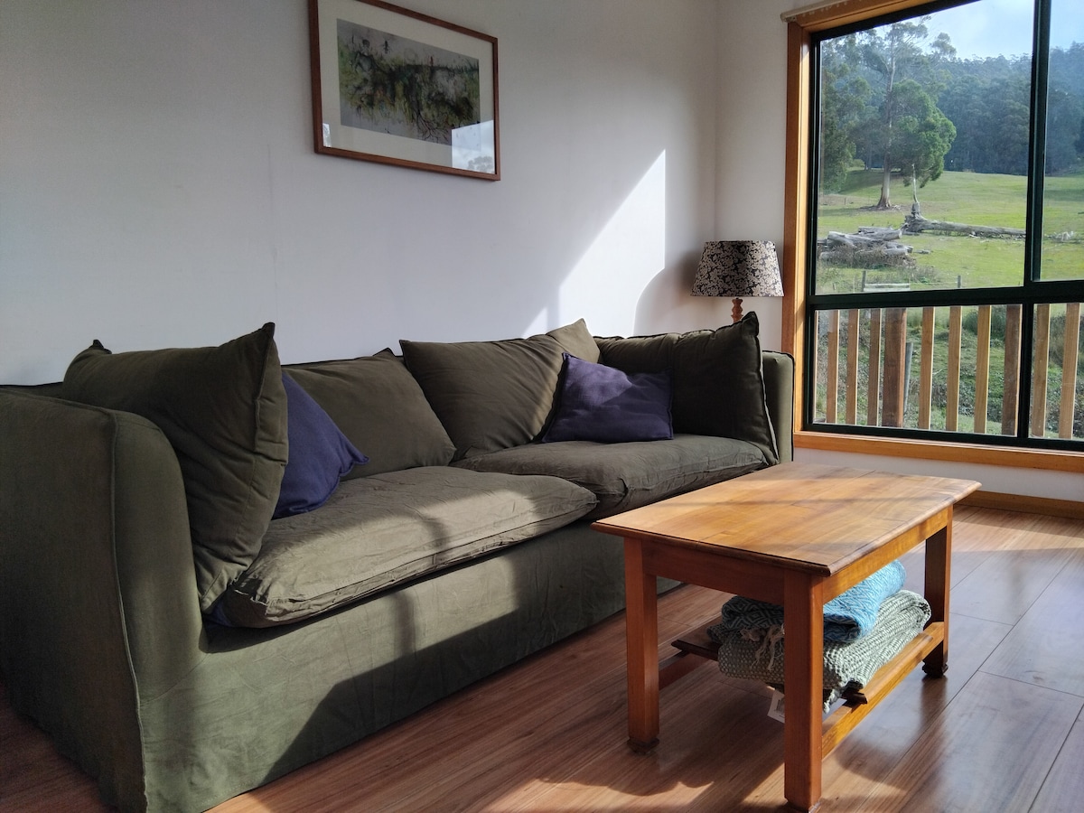 Mannaburne es una casa familiar de 12 acres en la región noreste de Tasmania. La cabaña tiene un dormitorio separado con una cama tamaño queen, baño y sala de estar. ¡Hermosas vistas y abundante vida silvestre para mantenerte entretenido! ¡Patio delantero vallado si quieres traer a tus bebés peludos o humanos! ¡Todos son bienvenidos en Mannaburne! ¡Una chimenea para mantenerte caliente mientras contemplas la noche estrellada! Leña incluida.