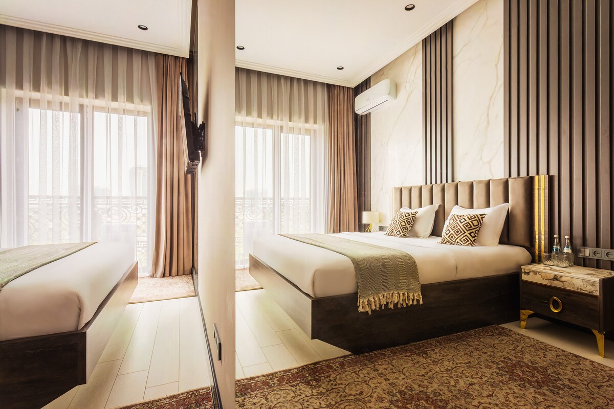 Te damos la bienvenida a los acogedores apartamentos Royal Rentals, la combinación perfecta de naturaleza y actividad comercial. Nuestro elegante apartamento con renovación de diseño crea un ambiente único de comodidad. El complejo residencial Usta Shirin en Tashkent es un proyecto moderno de Modern Stroy, ubicado en el distrito de Yunusabad en la intersección de las calles Usta Shirin y Bogiravon.