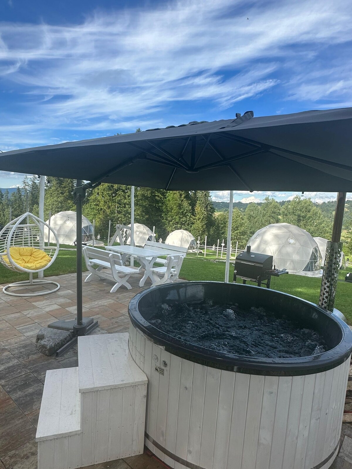Góralska Osada Glamp z Jacuzzi i Balią- Luksus w Tatrach! Witaj w Góralskiej Osadzie Glamp z jacuzzi i balią. Odkryj magię kopuł z widokiem na Tatry, gdzie luksus łączy się z naturą.