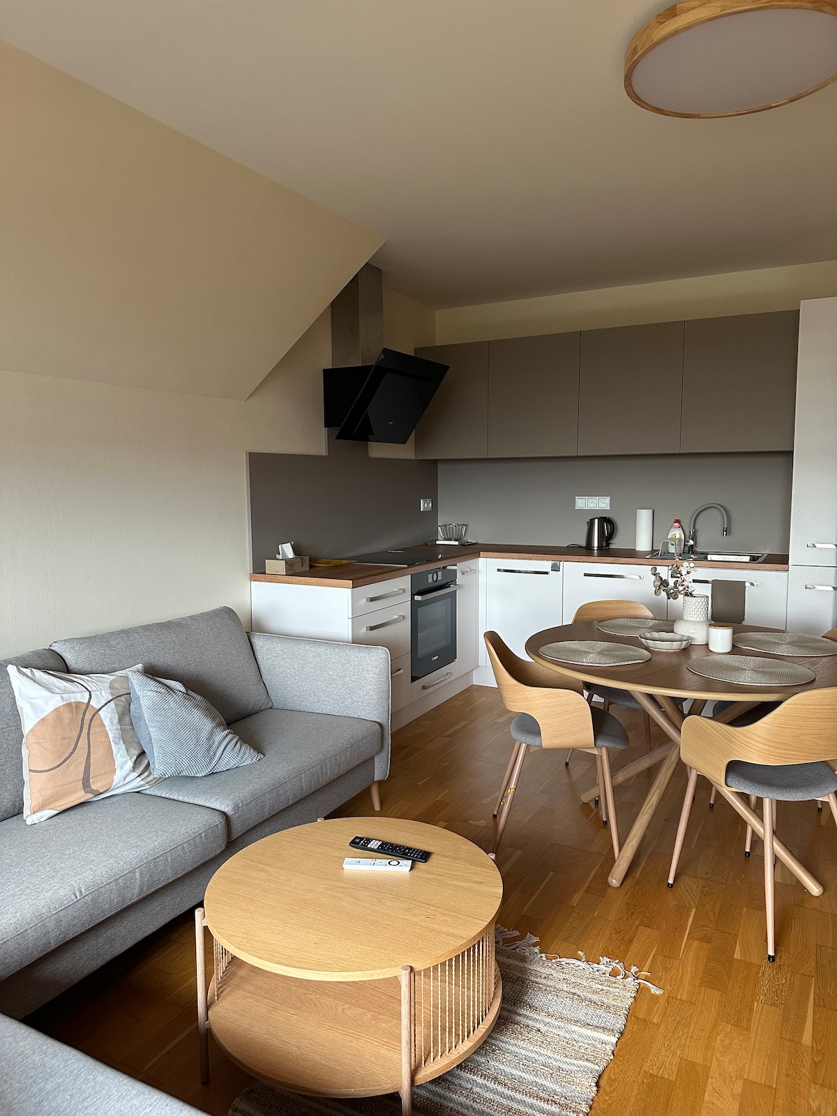 LuxTatras es un lujoso apartamento con vistas directas a High Tatras. Con una acogedora sala de estar llena de libros y arte, una espaciosa suite con balcón, un segundo dormitorio y una cocina totalmente equipada, es ideal para una familia con niños o parejas. A solo 8 minutos en coche del centro de Poprad y a 4 minutos de Stary Smokovec, ofrece acceso a rutas de senderismo, parques naturales y lagos, estaciones de esquí, pero también centros comerciales, por lo que es tu base perfecta para explorar las montañas Tatra.
