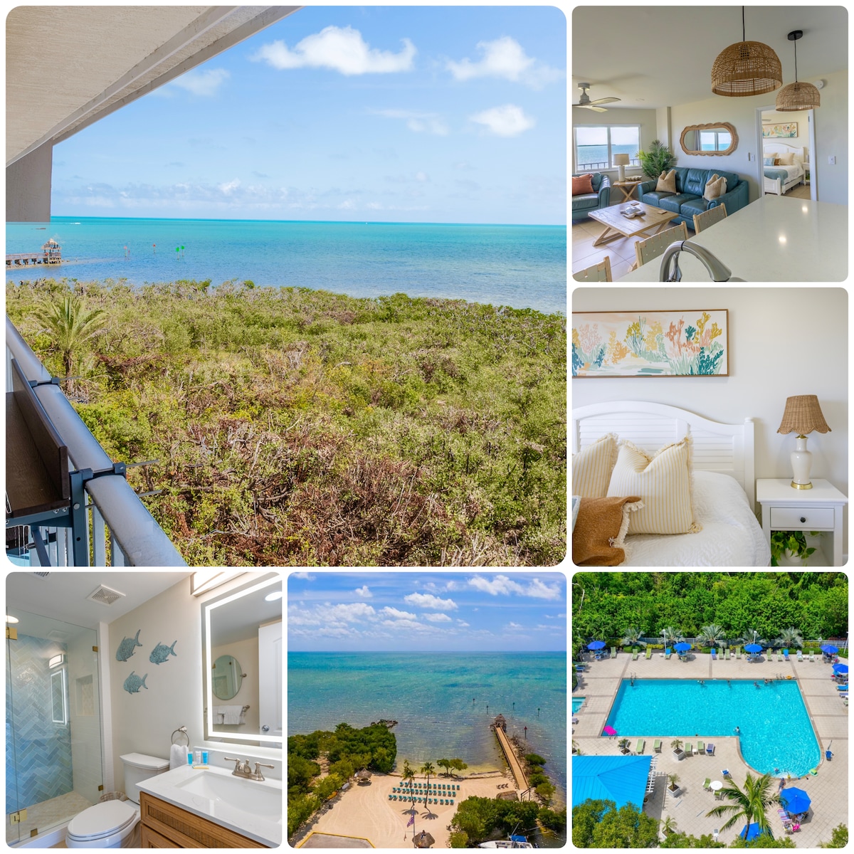 Vista al mar 2/2,5 con piscina en la playa y Marina Islamorada