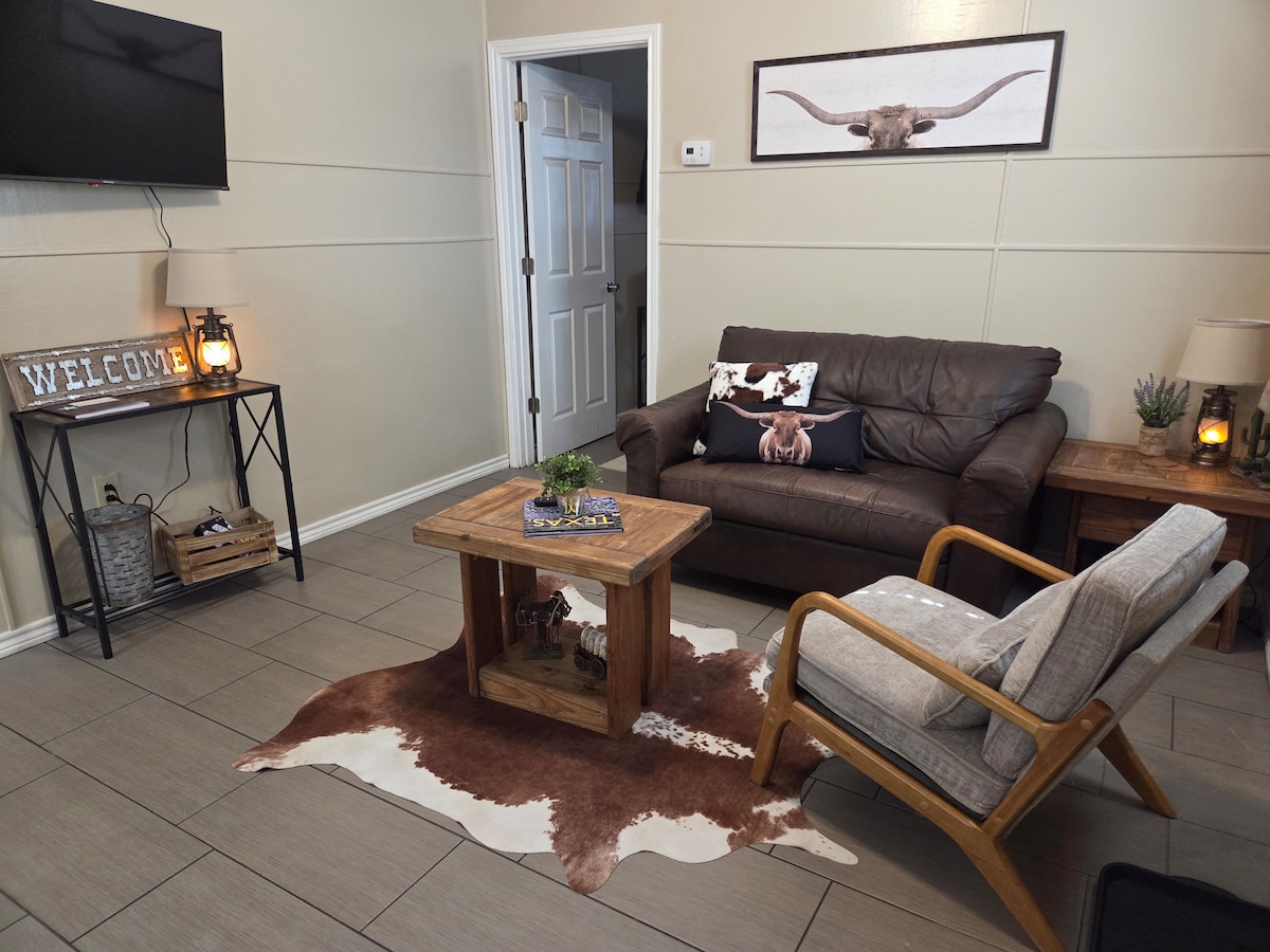 La «Casa de campo» es una casa de huéspedes privada de un dormitorio y un baño con una cocina completa que da a la piscina del patio trasero. La casa está situada en 40 acres fuera de los límites de la ciudad de Abilene, Texas (Potosi para ser exactos). Cuando llegues, es posible que veas caballos pastando en el campo, dos encantadores Collies y el gato de la granja «Major». Esperamos que nuestros huéspedes disfruten del tranquilo campo a pocos minutos de entretenimiento, restaurantes, aeropuerto y hospitales.