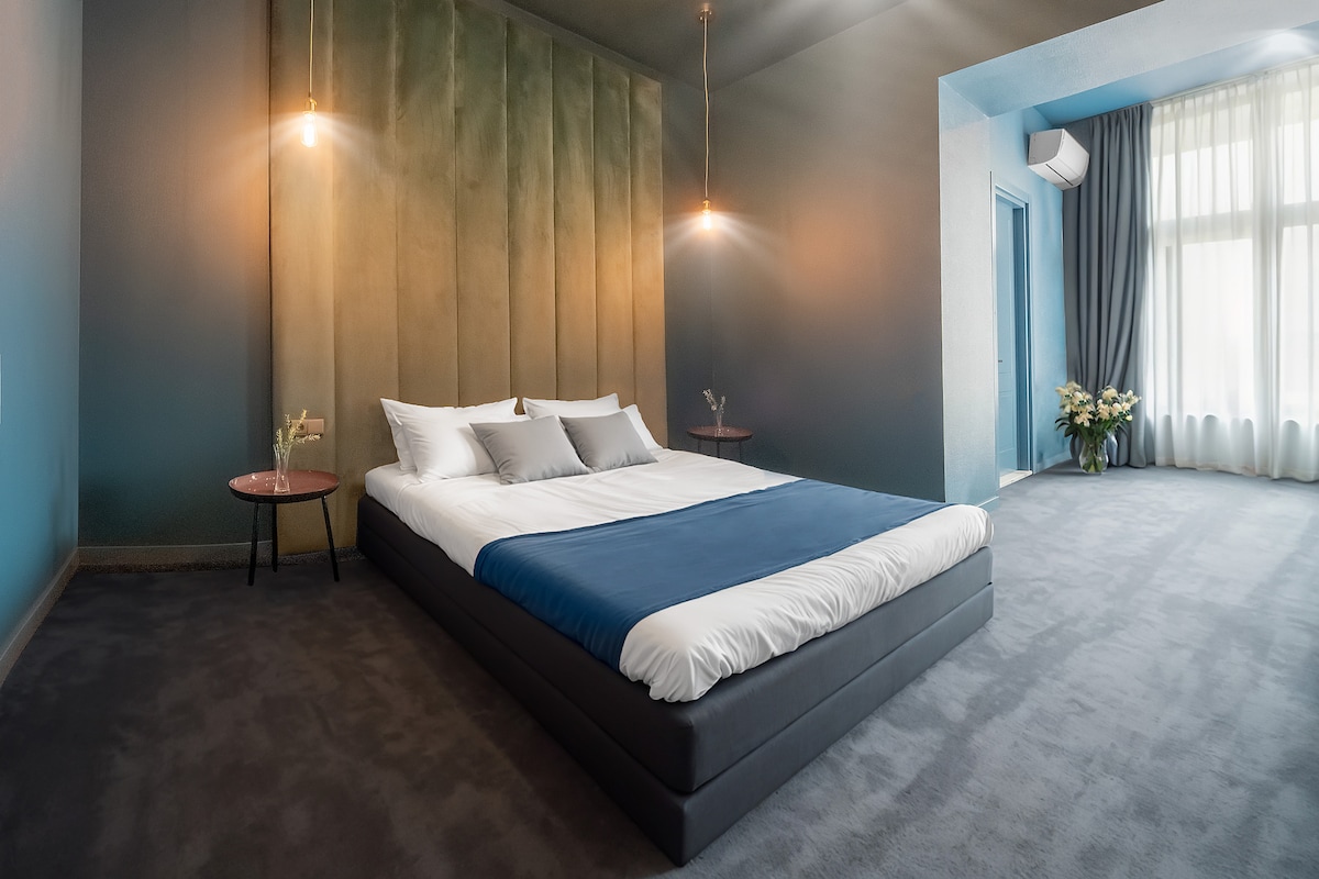 Bienvenido a Art Hotel Home, un hotel boutique de 7 habitaciones en el corazón del casco antiguo histórico de Tiflis. Esta habitación Deluxe es perfecta para 2 personas e incluye balcón. Los huéspedes también pueden disfrutar de nuestro café en la terraza con vistas panorámicas de la ciudad.