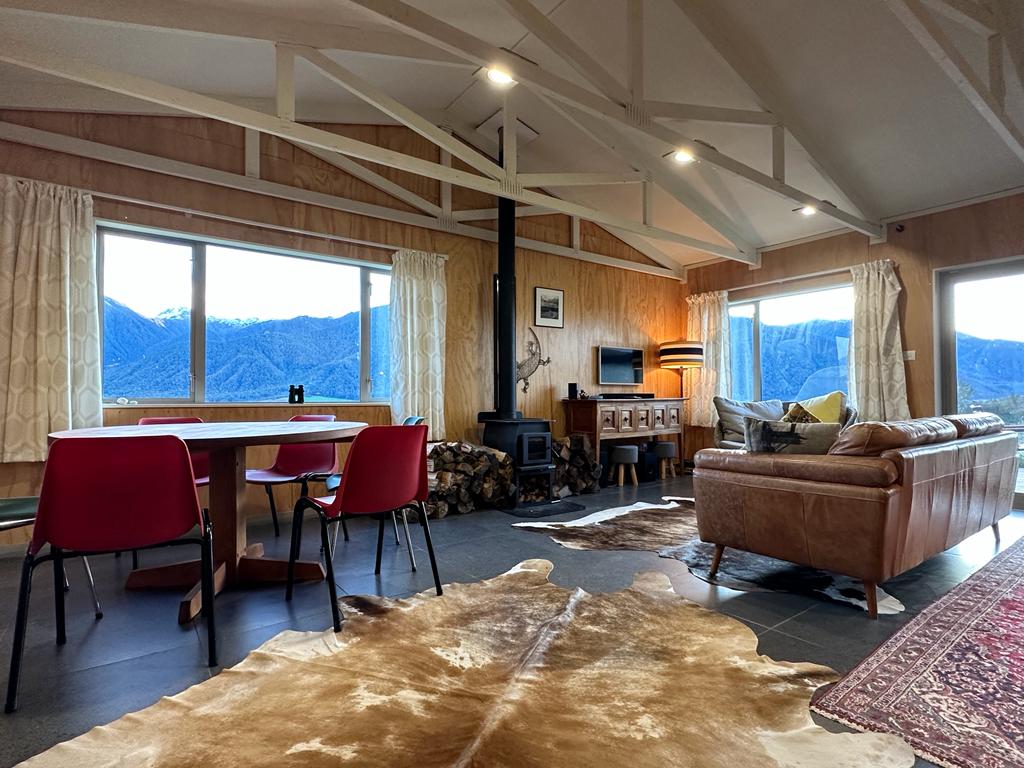 This adorable and very warm winter cabin, with stunning views and spa, is part of our 25-acre property, located behind The Lookout Lodge, at the manager's residence. This rustic, cute cabin has a queen bed, and a separate private bathroom with an outside hot shower house just next to the cabin. There is also a private spa where you can enjoy amazing star gazing as you soak! You’ll love this cabin because of its unique location, awesome shower, stunning scenery, and taste of kiwi farm life.