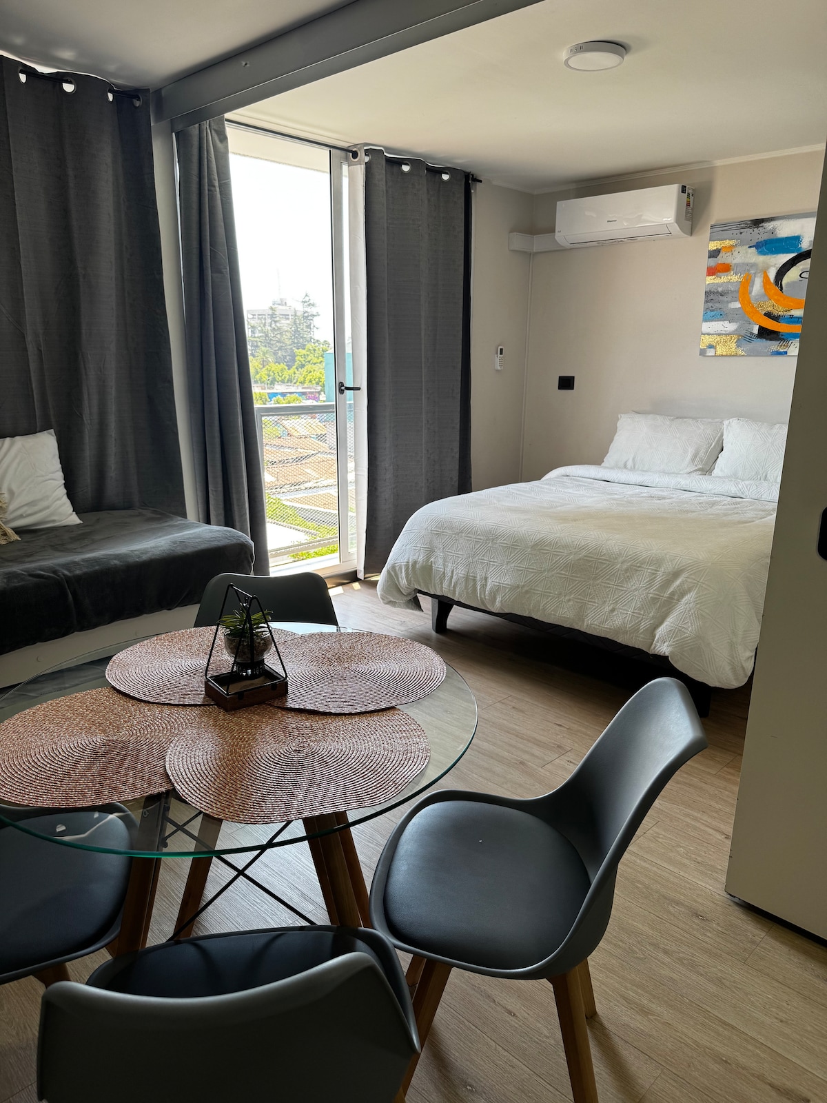 Relájate en esta escapada única y tranquila en el corazón de Santiago. Nuestro acogedor studio de un ambiente es un oasis inspirado en la vibrante ciudad de Nueva York, donde la elegancia urbana se fusiona con la comodidad y el estilo Disfruta de una ubicación privilegiada en el centro de la ciudad, con excelente conectividad de transporte público, incluyendo metro Toesca y Parque Almagro a pocos pasos. Nuestro studio es el refugio perfecto con internet de alta velocidad y aire acondicionado