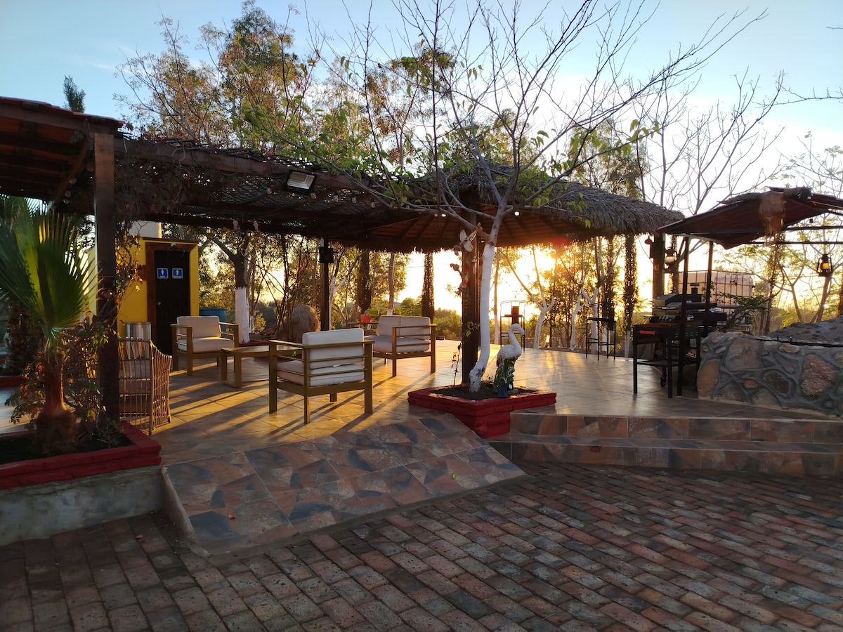 Un espacio único, ubicado en Tecate, B.C., en la puerta norte de la Ruta del Vino, lugar donde fueron sembrados los primeros sarmientos de vid en Baja California, a 1 km de Rancho Tkt, 40 min del Valle de Guadalupe donde se ubican algunas de las vinícolas mas reconocidas del mundo, un lugar mágico para relajarse, desestresarse, estar en contacto con la naturaleza y olvidarse de la monotonía y el ruido de la vida diaria, un lugar lleno de magia y mucha paz!