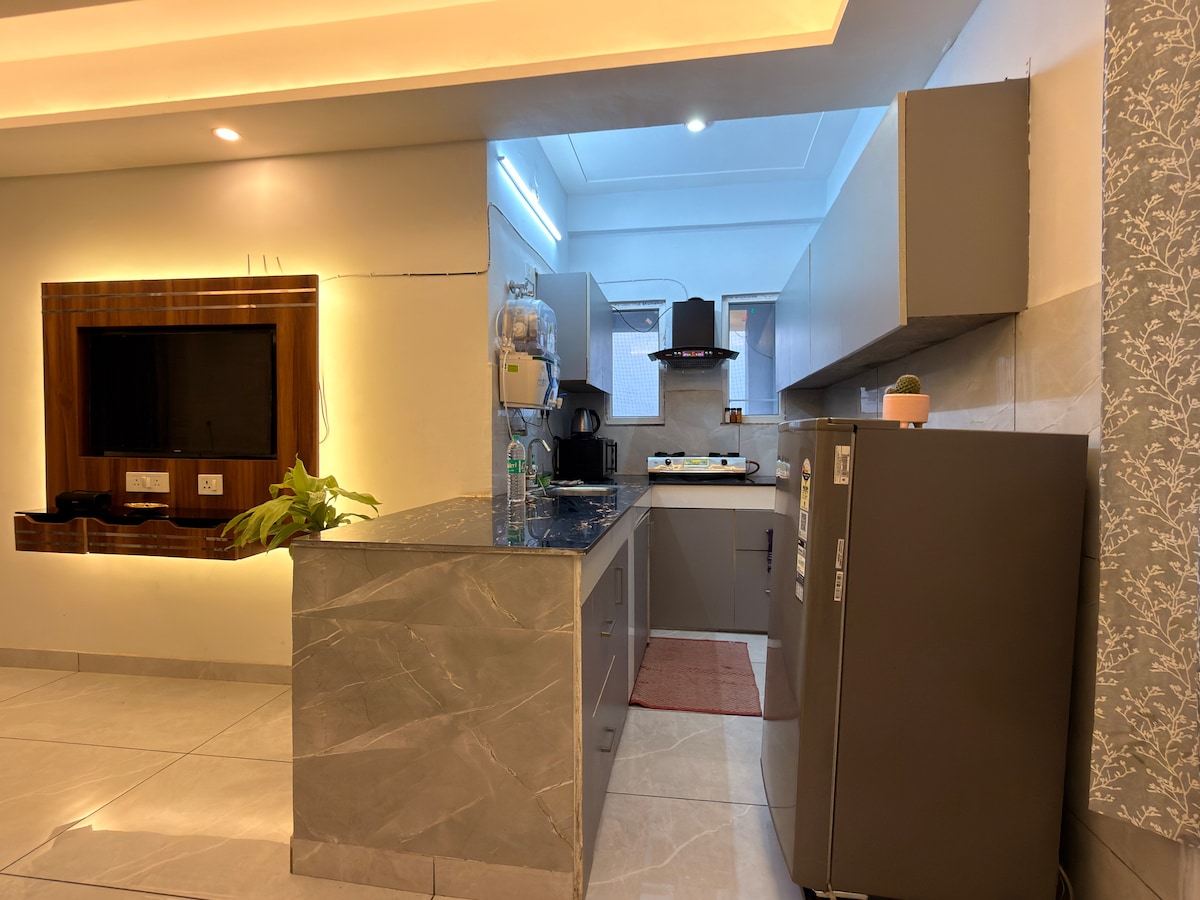 🌿.….Welcome to your luxury 1BHK flat in Tapovan, Rishikesh – a peaceful retreat just steps from yoga centres, meditation schools, cafés & the Ganga River. Enjoy a private balcony, spacious lounge, large kitchen, modern bathroom, and cozy bedroom –all fully furnished & Pets Friendly. Ideal for yoga students, digital nomads, couples & travelers, this flat blends modern comfort with soulful Rishikesh vibes for an unforgettable stay - Blinkit - Zomato - & Swiggy Food deliveries available
