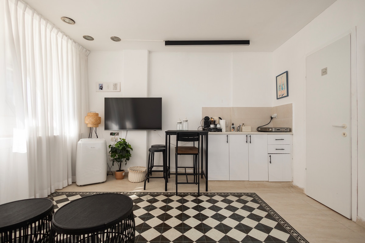Acogedor y elegante estudio en el corazón de Tel Aviv, ubicado en la vibrante calle Ben Yehuda. A solo unos pasos de la playa, Dizengoff y las principales atracciones de la ciudad. A poca distancia a pie de cafés, restaurantes, bares, gimnasios, galerías de arte, supermercados, salones, farmacias y más. El puerto de Tel Aviv y los principales centros comerciales están cerca, con fácil acceso a todos los medios de transporte. Perfecto para parejas o viajeros solitarios que buscan relajarse, explorar y experimentar el animado ambiente de Tel Aviv día y noche.