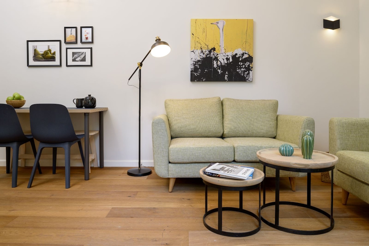¡La propiedad tiene un MAMAD privado! ¡Te damos la bienvenida a nuestro acogedor departamento en el corazón de Sheinkin Street! Con 2 camas cómodas y un jardín tranquilo, este departamento es perfecto para tu estadía. Descubrí tiendas de moda, cafés y un ambiente vibrante a solo unos pasos. Disfrutá de la elegante sala de estar, la cocina totalmente equipada y el comedor. Salí al tranquilo jardín, un oasis en la ciudad. Con su ubicación privilegiada y sus encantadoras comodidades, este departamento es ideal para explorar Tel Aviv.