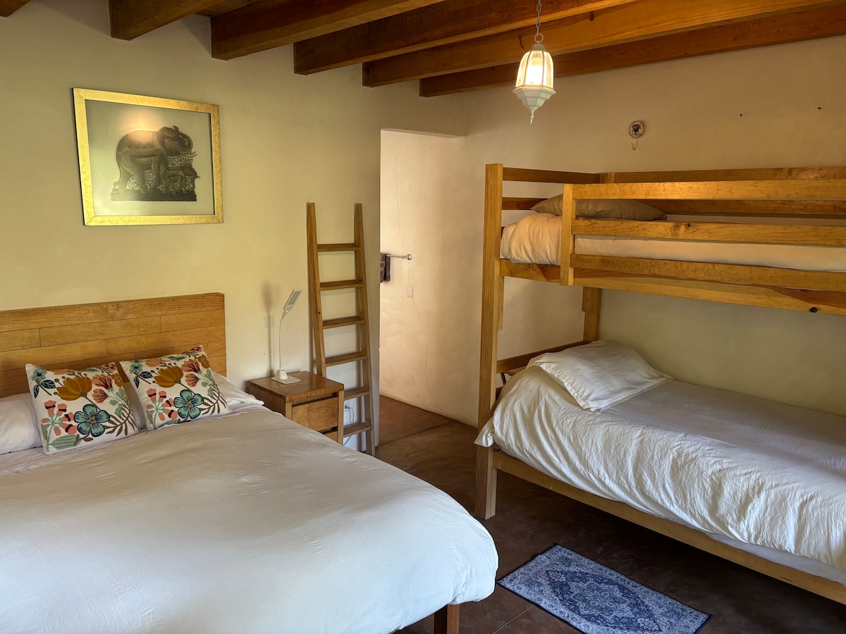 Esta acogedora suite de 29.18 metros cuadrados ofrece acceso directo al patio central de la casa y la sala exterior con fire pits. Cuenta con una cama king size y baño con regadera. Lo más atractivo de esta habitación es que su ventana lateral permite la contemplación de un árbol de cientos de años que fue conservado y protegido para seguir siendo protagóinco en esta casa.