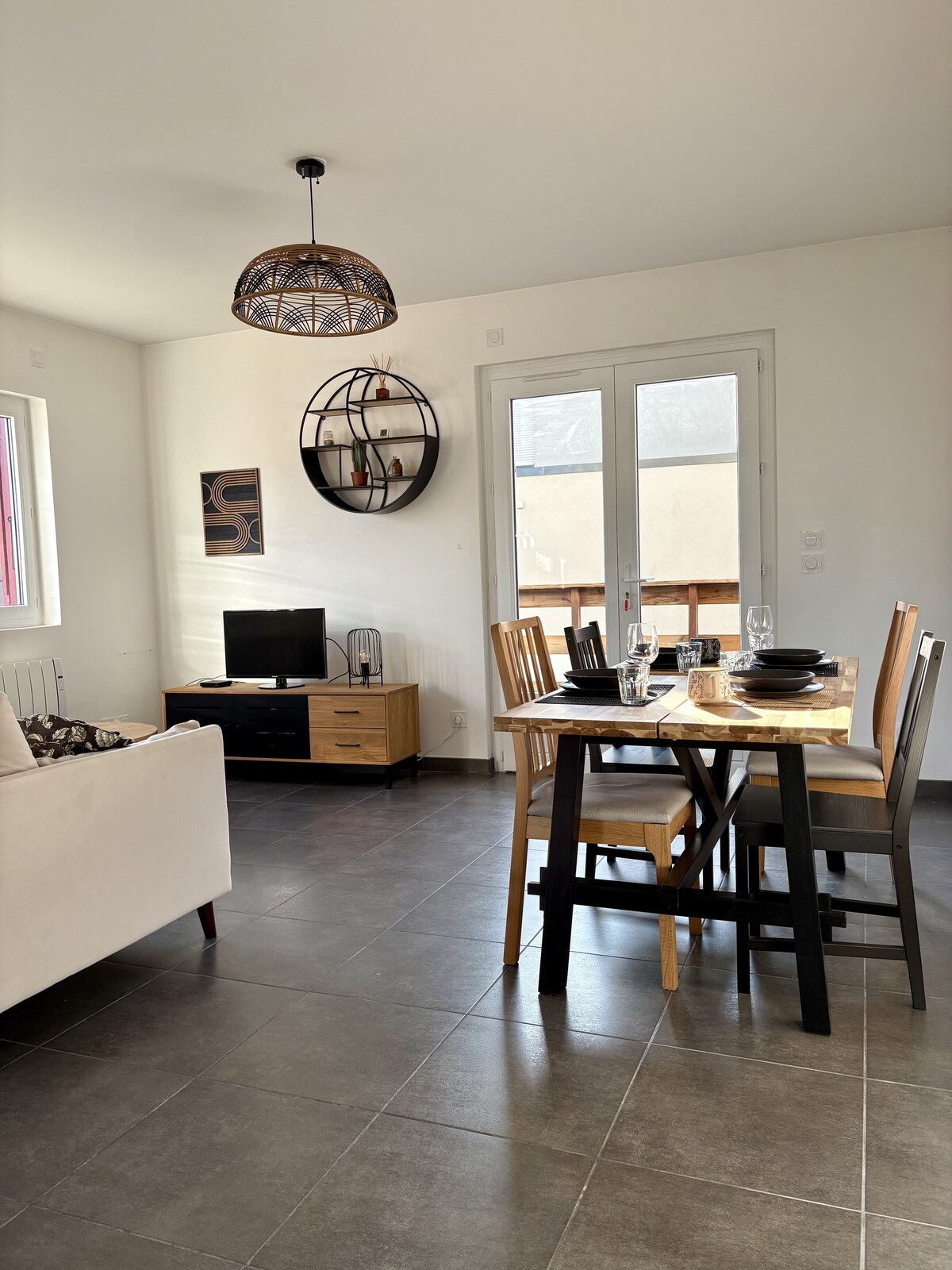 Spa privatif 6 places Logement 100m2 comprenant une cuisine équipée, salon avec canapé d'angle convertible, salle à manger, trois chambres dont une avec salle de bain privative, salle de bain supplémentaire avec douche et baignoire, toilette séparé. Jardin avec terrasse clos, table extérieure et plancha gaz. Carte d'accès au lac disponible dans le logement Possibilité de garer trois véhicules sur place. Ménage, draps et serviettes compris dans la location