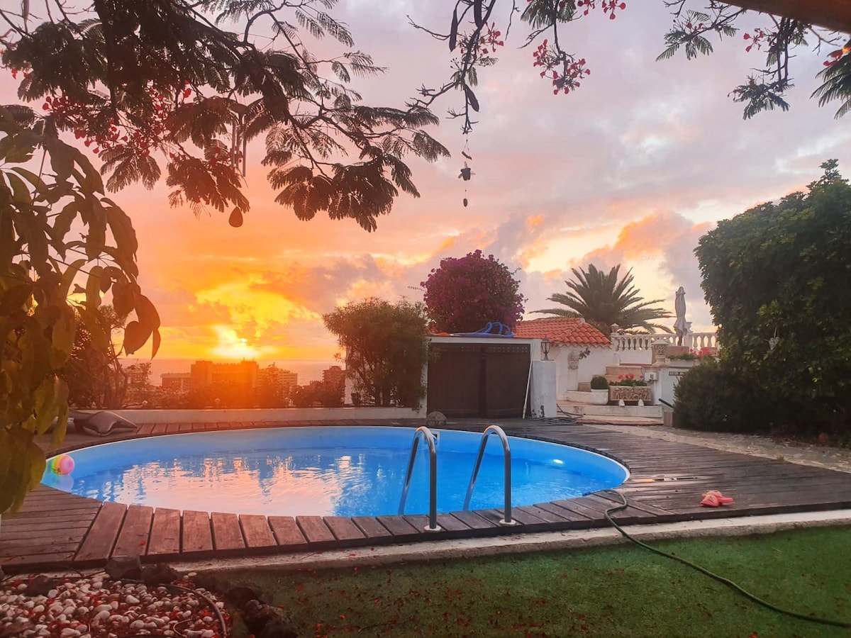 @sleephousetenerife Beautiful Canarian-style house with two rooms recently renovated with a large terrace and a swimming pool with solarium and chilling area. The house is located in a quiet area with a rural atmosphere but with the advantage of being only 15 minutes away from the beach. The house is on the top of a hill and has a wonderful and clean panoramic view towards the sea. The sunsets are magnificent with La Gomera island on background.