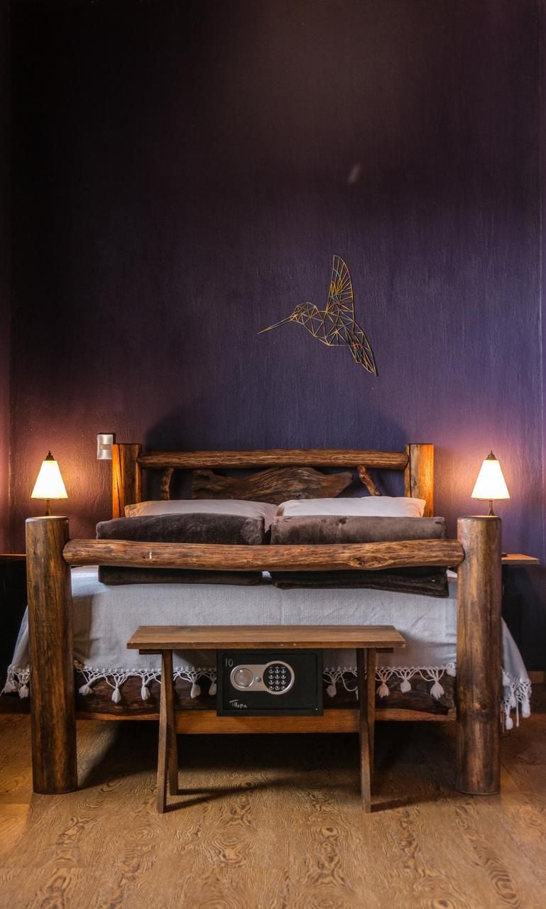 Disfruta de la tranquilidad en nuestra habitación doble con cama king size y baño privado con jacuzzi, ubicada en la torre murciélago /terraza de la finca. Relájate en la alberca, la terraza junto al lago, o pasea por los jardines. Ofrecemos paseos a caballo, visita con los lobos y caminatas. ¡Una escapada perfecta en la naturaleza! No querrás irte de este lugar tan único y encantador.