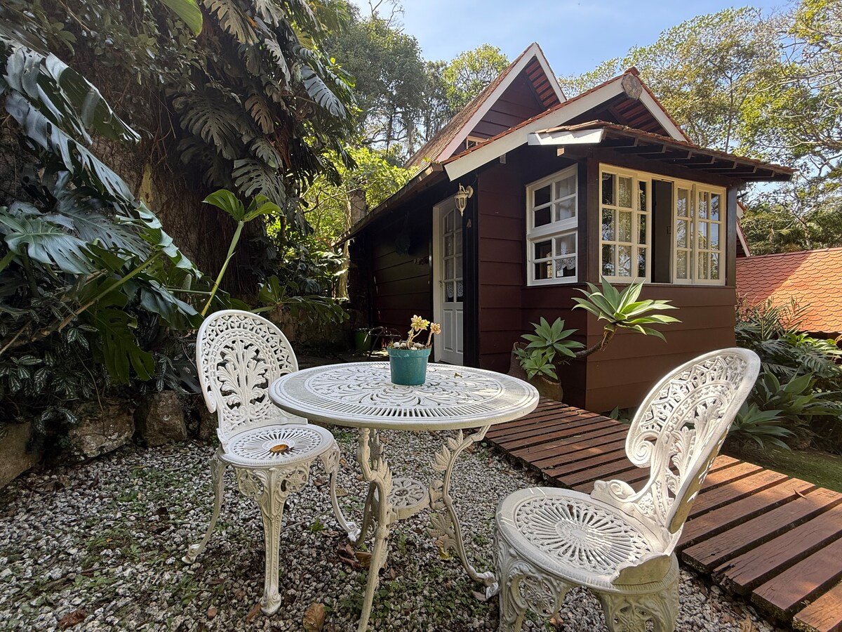 Relaxe neste espaço calmo e cheio de estilo. Na Cabana Jandaia você desfrutará do silêncio, apenas quebrado por pássaros do PARNASO, Parque Nacional da Serra dos Órgãos, e Rio Beija-Flor. Tenha uma hospedagem energizante, com conforto, bem-estar e integração à Natureza. Diárias com café da manhã (bed and breakfast), sauna, espaço gourmet e banheira de ofurô. Estacionamento privativo, segurança e hospitalidade. Informamos que possuímos cães, mas durante sua estadia ficarão restritos ao canil.