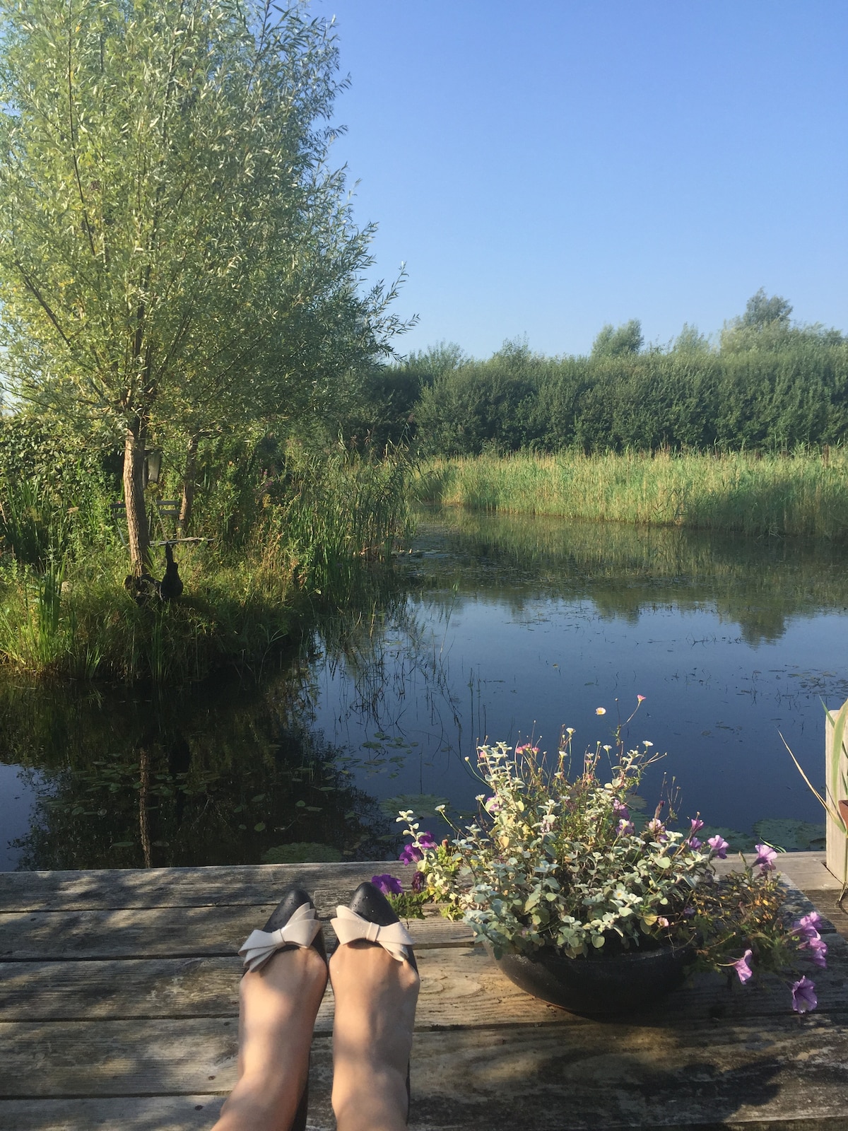 Aquí en el tranquilo frisón Rohel realmente puedes estar afuera, sentir el viento en tu pelo y el sol en tu piel. Ciclismo y senderismo por los prados y baño (frío) en el Tjeukemeer. Bebe una copa de vino en la terraza sobre el agua, con vistas al infinito, bajo los antiguos árboles frutales del jardín. Aparte de los sonidos de los pájaros, el susurro del viento y en la distancia un tractor, aquí no se oye nada en absoluto. Las puestas de sol pueden ser increíblemente bonitas aquí.