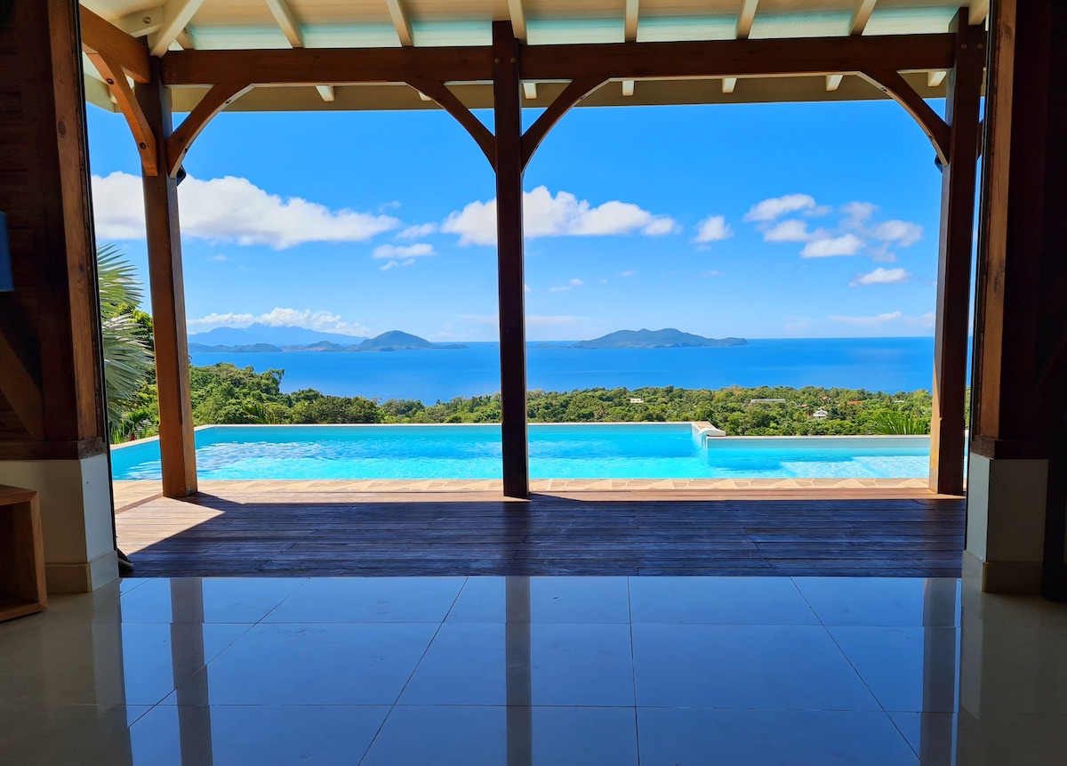 Villa Baïa - Impresionante vista de la bahía de Saintes con piscina privada Baïa te invita a vivir una experiencia única entre la naturaleza y el mar Caribe. Totalmente climatizada, esta villa combina comodidad moderna y encanto tropical y tiene su propia piscina infinita privada. Perfecto para refrescarse mientras disfrutas de los vientos alisios, la gran terraza y el jardín ofrecen un entorno ideal para relajarse. Esta villa es la opción perfecta para una estancia lujosa y tranquila.