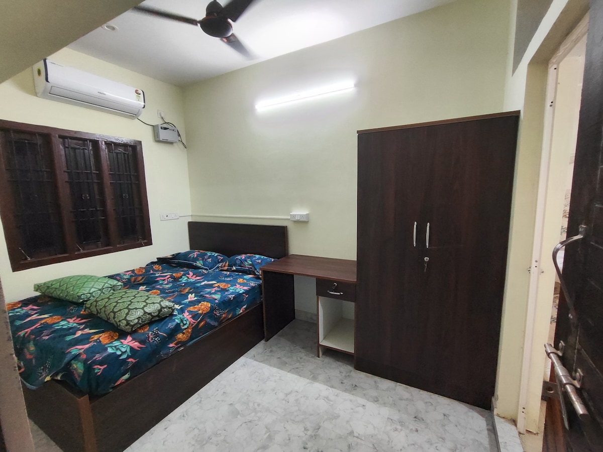Disfruta de la comodidad de nuestra casa privada en la planta baja en Avadi, ideal para familias de hasta 4 huéspedes. Disfruta de wifi, una cocina totalmente equipada con nevera, estufa de gas y calentador de agua, un dormitorio con aire acondicionado con cama tamaño king, dos colchones en el suelo y un televisor inteligente. Hay una lavadora disponible para tu comodidad. Relájate en un entorno sereno cerca de las zonas clave de Chennai. Aparcamiento gratuito y una silla de oficina incluidos. No se permite fumar, beber ni parejas solteras. Siéntete libre, como en casa. ¡De nada!