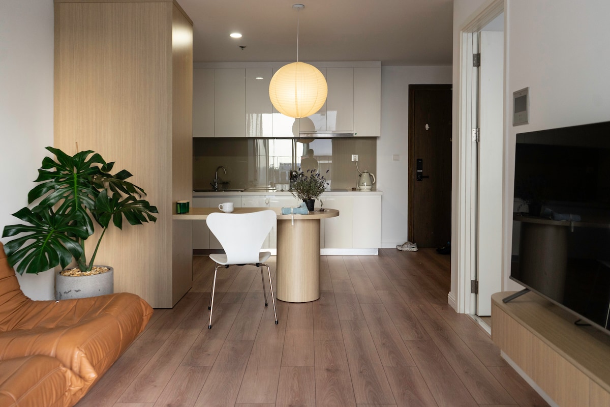 Located in District 2, Kim Apartment is an elegant minimalist one-bedroom retreat just 5 minutes from Thao Dien cafés, Vincom Mega Mall, and Metro Line 1. It features a double bed, built-in wardrobe, open living area with equipped kitchen and washing machine, and an east-facing balcony perfect for sunrise views overlooking a courtyard. Enjoy high-speed Wi-Fi, cable TV, inverter AC, 24/7 security, and fast elevator. Your boutique home in Ho Chi Minh City awaits.
