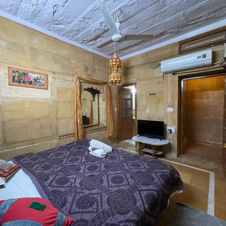 We're a happily married English-Indian couple running this Airbnb experience in the heart of Jaisalmer. This gorgeous en-suite room has super clean bedding, fresh white towels and a sparkling bathroom ! There's a seating area too with a TV so you can chill out and relax. It's located in a quiet side street close to The Fort, the Desert, Patwon Havelli and other key tourist attractions. We have a fantastic rooftop restaurant and organise incredible camel safari experiences too.
