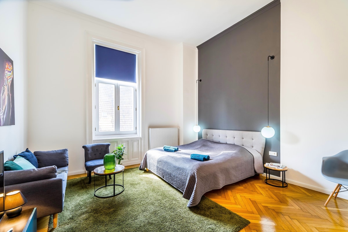 La ubicación es el epicentro de Budapest, a 20 metros del Puente de las Cadenas. La casa anunciada de 150 años fue diseñada por el mismo arquitecto que el Parlamento y tiene una belleza decadente y antigua, mientras que el apartamento es muy simple y básico, un poco industrial, pero se siente como en casa inmediatamente. El apartamento tiene vistas a un patio interior verde entre casas. Aire acondicionado split a partir del 5 de junio de 2025.