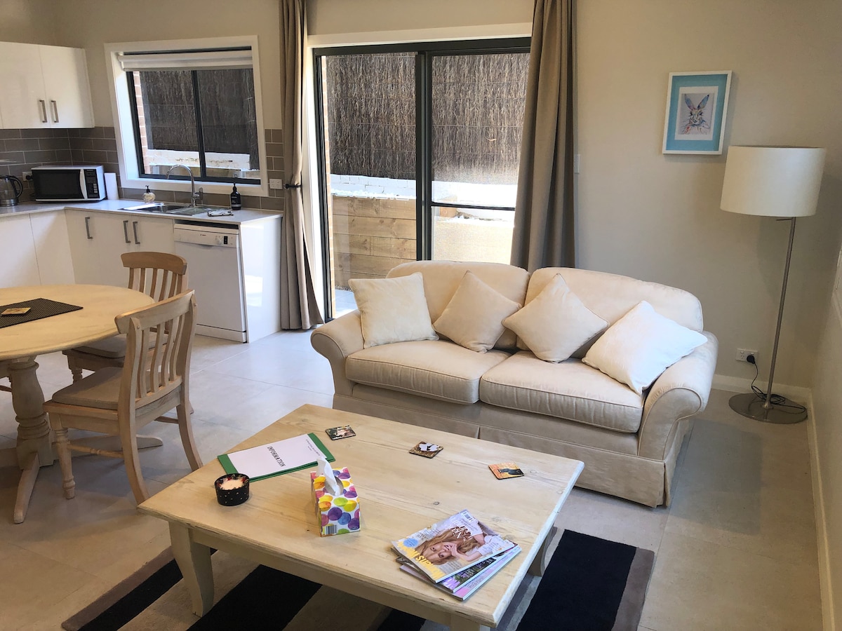 Estudio tranquilo y privado construido con un propósito. Entrada y baño propios. Mobiliario moderno con cama tamaño king y una manta eléctrica en invierno. Ropa de cama y artículos de aseo de lujo. Smart TV, cocina americana con banco de piedra. Aire acondicionado, microondas, tostadora, té/café (instantáneo y Nespresso). Se proporciona un desayuno ligero. Barbacoa y porche privado. Armario. Lavadora nueva. Despiértate con el sonido de los pájaros. LGBTI amigable. Estacionamiento seguro cerrado. Los viajeros de negocios/huéspedes habituales pueden optar a un programa de fidelización.