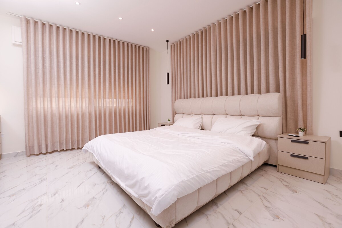 ¡Limpio y minimalista! 2 dormitorios, 2 baños y aparcamiento gratuito.