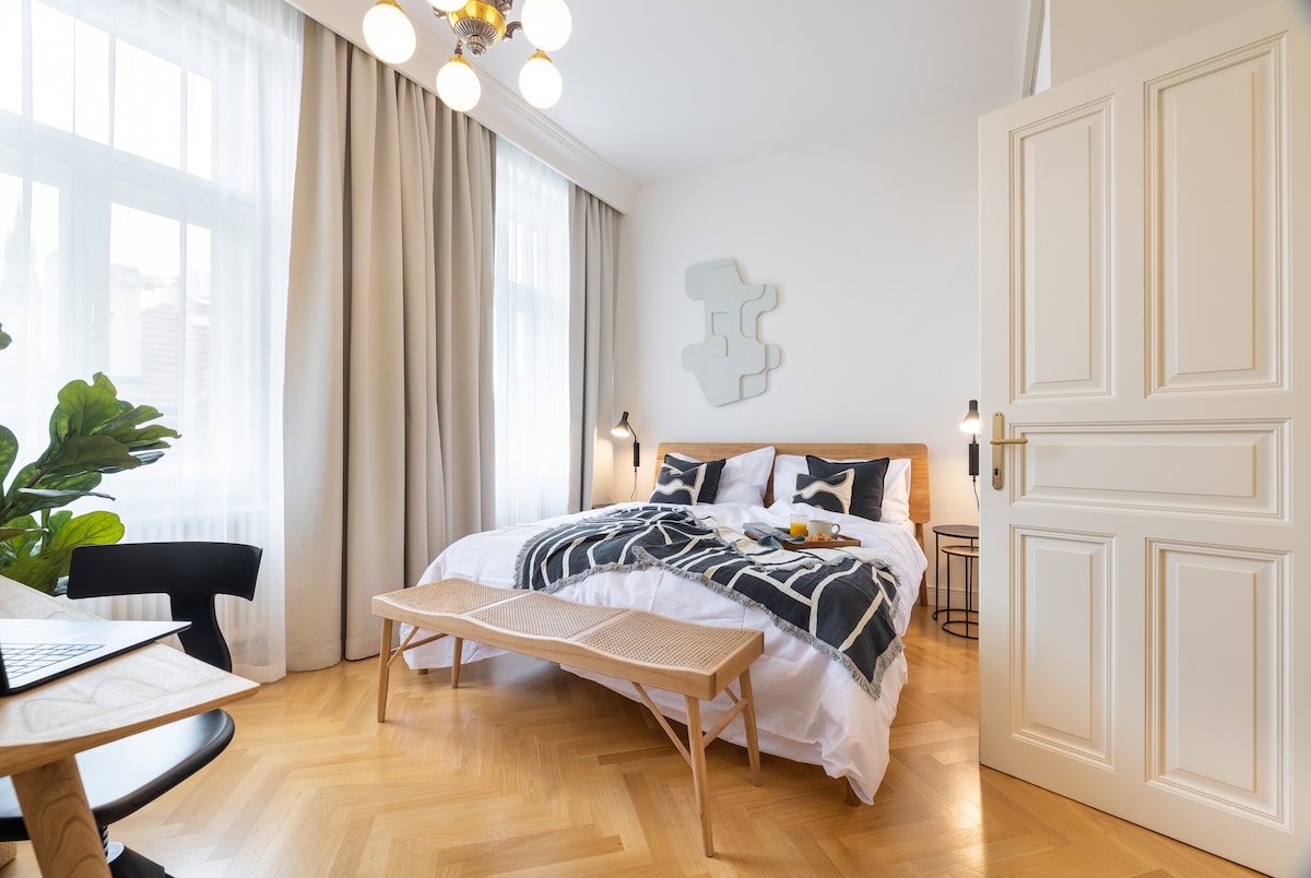 Recientemente renovado en 2022, este apartamento ofrece un espacio de vida fresco, limpio y moderno en una ubicación privilegiada. A pocos pasos de la plaza Wenceslao, el Museo Nacional y la estación principal de tren, ofrece fácil acceso a las principales atracciones de la ciudad. El apartamento es luminoso y espacioso, con un diseño elegante para una estancia cómoda. Perfectamente ubicado en el corazón de la ciudad, combina la comodidad urbana con un ambiente tranquilo, por lo que es una opción ideal tanto para estancias cortas como largas.