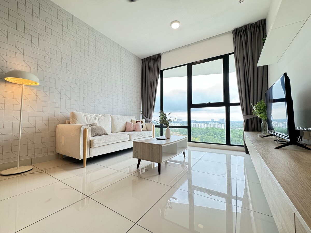 ¡Diseño de lujo y espaciosa unidad de 3 dormitorios con bañera! Camas tamaño king y queen de primera calidad que garantizan un buen descanso aquí, con vistas increíbles al centro comercial Midvalley y a la ciudad de JB. ¡Tenemos Smart TV equipado con aplicaciones de YouTube y Netflix! ¡También hay una máquina purificadora de agua que facilita tu estancia aquí! ¡Rodeado de centros comerciales y una amplia variedad de sabrosa comida local! - A 2 minutos en coche de Midvalley Southkey JB. - A 5 minutos del centro comercial KSL City. - A 8 minutos del centro comercial City Square y de la aduana JB.