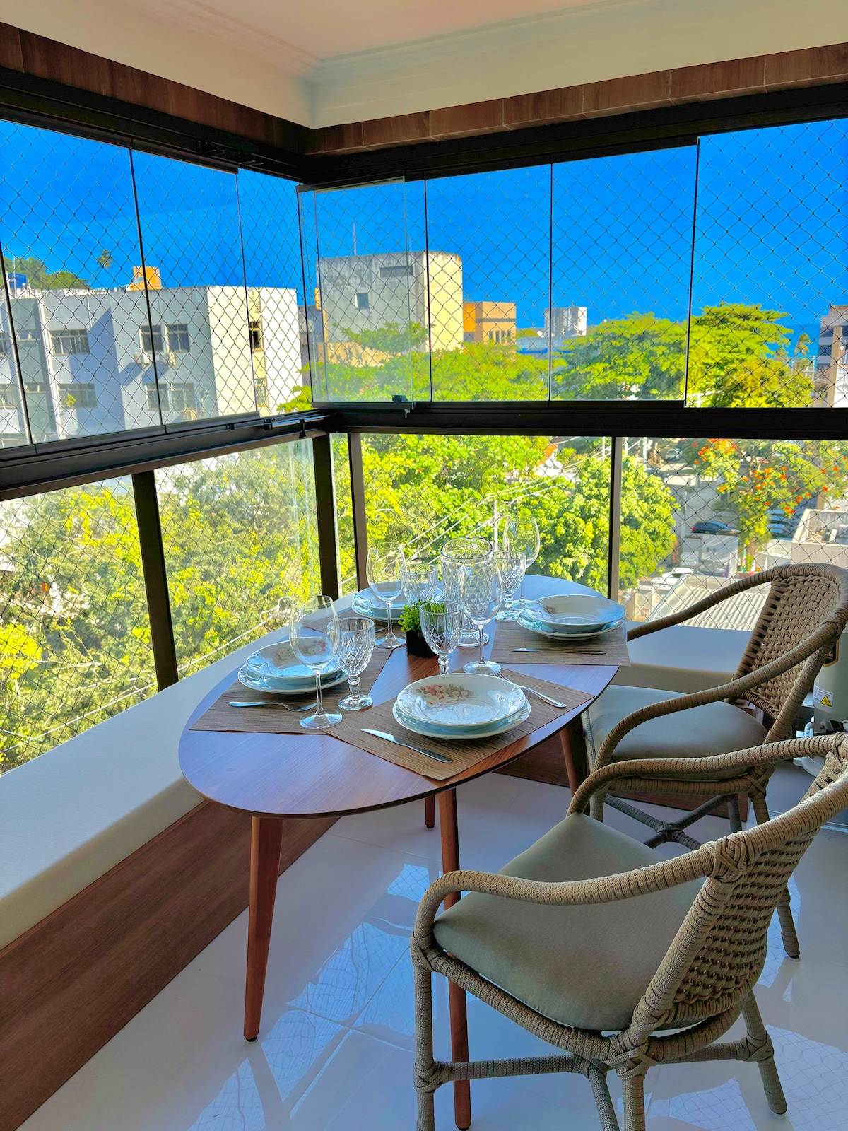 Departamento decorado con magníficas vistas de la bahía de Todos-os-Santos, en Ondina, en el circuito de carnaval, cerca de Farol da Barra y Rio Vermelho. Dos suites con aire, sala de estar, cocina, wifi, servicio de limpieza, recepción las 24 horas y estacionamiento giratorio en Apart Freight. Camas nuevas, ropa de cama y baño. Smart TV de 43 pulgadas, heladera, estufa, sofá cama, microondas, licuadora, sandwichera, cafeteras: Nespresso y Arno, y utensilios de cocina. Piscinas, bar, panadería, restaurantes, tiendas, galería y salón.