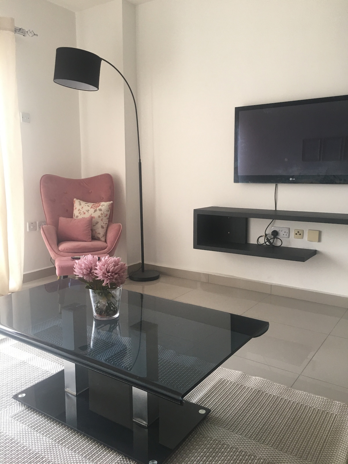A stunning modern apartment located in prime Accra (Cantonments), Ghana. This contemporary furnished apartment, boasts modern fitted kitchen equipments and appliances, wifi, an intercom and a balcony. The location is also centrally located which is perfect for business travellers, shopaholics or those looking forward to enjoying the Accra nightlife.
