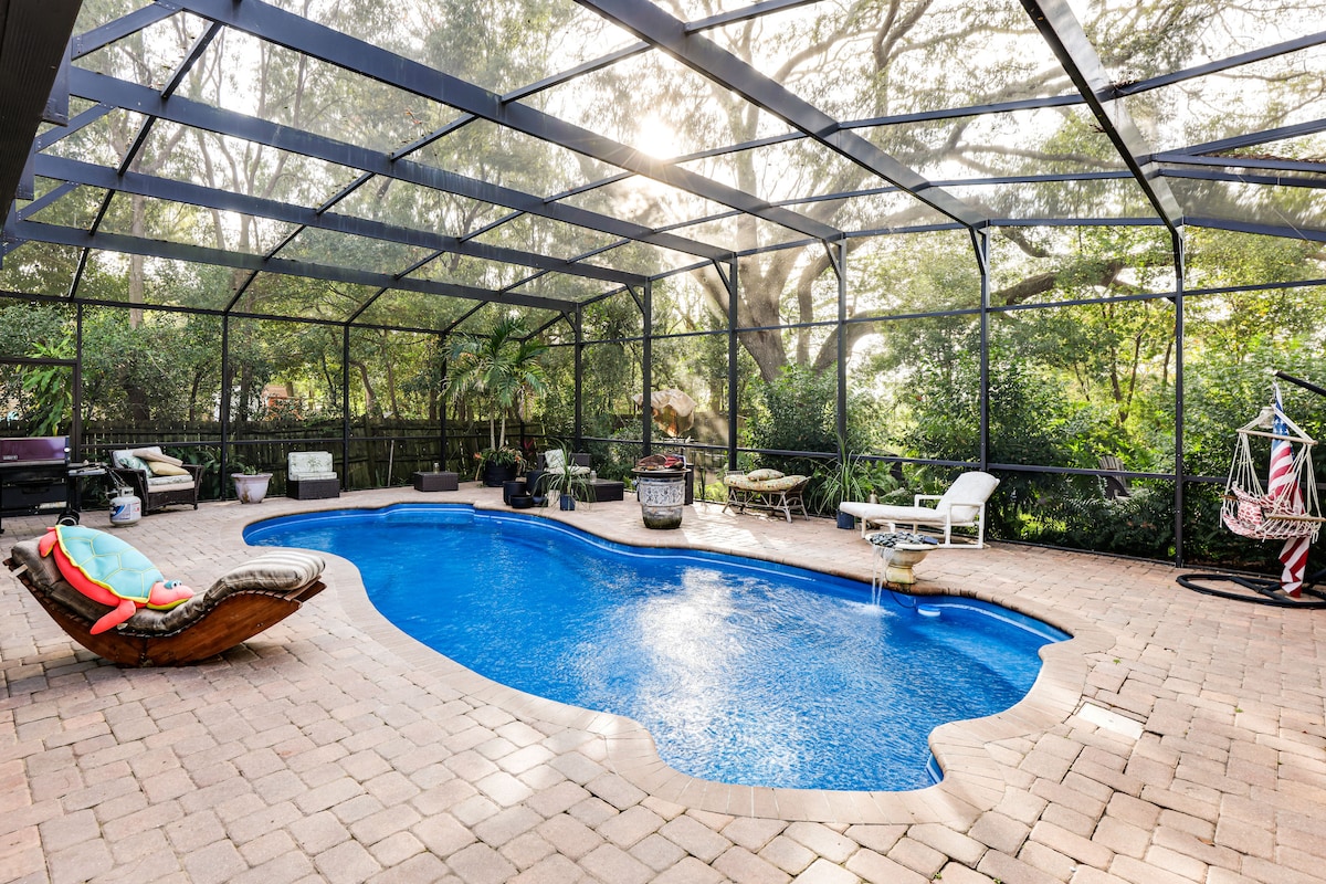 ¡Nuestra escapada tranquila! Ya sea de vacaciones o de viaje por trabajo, ¡este es el lugar para hospedarte! Con una hermosa piscina y una gigantesca zona con cómodos muebles de patio y un lugar para comer fuera, no se puede superar nuestra casa de huéspedes para disfrutar del clima de Florida. En el interior, acabamos de agregar una nueva cama tamaño queen increíblemente cómoda con un colchón "morado" en un marco ajustable. Tenemos wifi de alta velocidad y un televisor de pantalla grande con Amazon Prime, Netflix y mucho más.