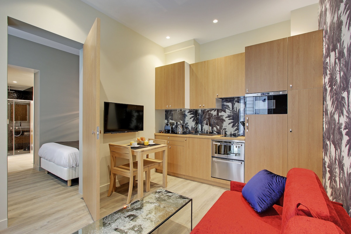 Situado en el 6.º distrito de París, frente al Teatro del Odéon y a dos pasos del Jardín de Luxemburgo, este pequeño estudio acogedor y bien pensado le proporcionará todas las comodidades necesarias para su estancia en la capital. Disfrute de una ubicación ideal para sus desplazamientos al estar en el corazón del Barrio Latino.