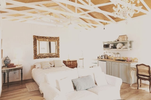 A peaceful , romantic and stylish cottage with a great view of the valley . Our third cottage " Casita Blanca " Spanish for little white house, built in 2019 but it has the timeless charm of french antiques and quality furnishings. It's character and location makes the perfect getaway for a couple who appreciate some luxury touches like authentic french antiques and crystal chandeliers. We do have other two properties under the listings "Casita de Campo" and "Casita de Bosque" to choose from.