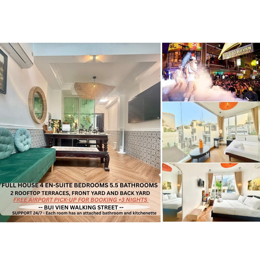 En una casa artística y acogedora situada justo en el corazón de Saigón, podrás disfrutar de una experiencia completa en esta ciudad. Está rodeada de muchas comidas callejeras famosas y exóticas y de los icónicos mercados locales vietnamitas. Con un café perfecto para empezar la mañana, podrás descubrir los lugares más famosos de Saigón a 5 minutos a pie del alojamiento. Es una casa de 5 dormitorios con suficiente espacio para ti, tu familia y tus amigos...