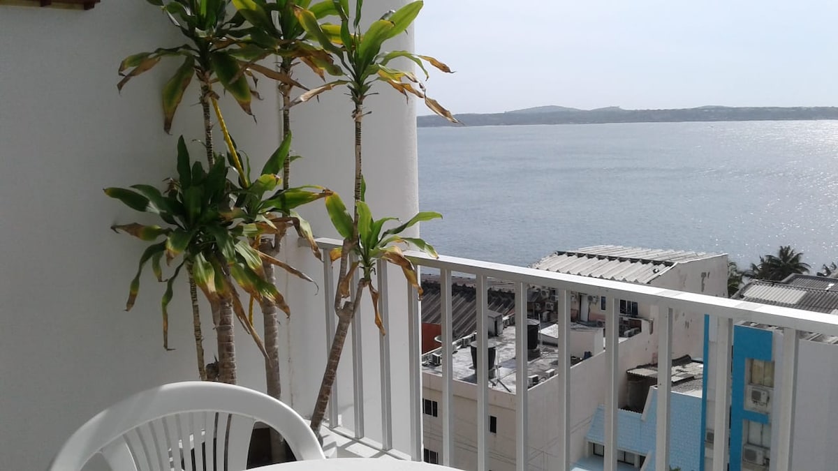 Relájate con tu familia en este lugar frente al mar. Fue equipado, pensando en el bienestar de nuestros huéspedes. Tiene 2 alcobas amplias y 2 baños con agua caliente. En la zona social hay TV y juegos de mesa como ajedrez y dominó. La cocina se encuentra equipada. Disponible lavadora/secadora. El apartamento tiene TV cable y WIFI. Contamos con piscina infinita, jacuzzis, sauna, turco, gimnasio y juegos infantiles. El edificio está a 4 min. del aeropuerto y a 1 min la Ciudad Amurallada.