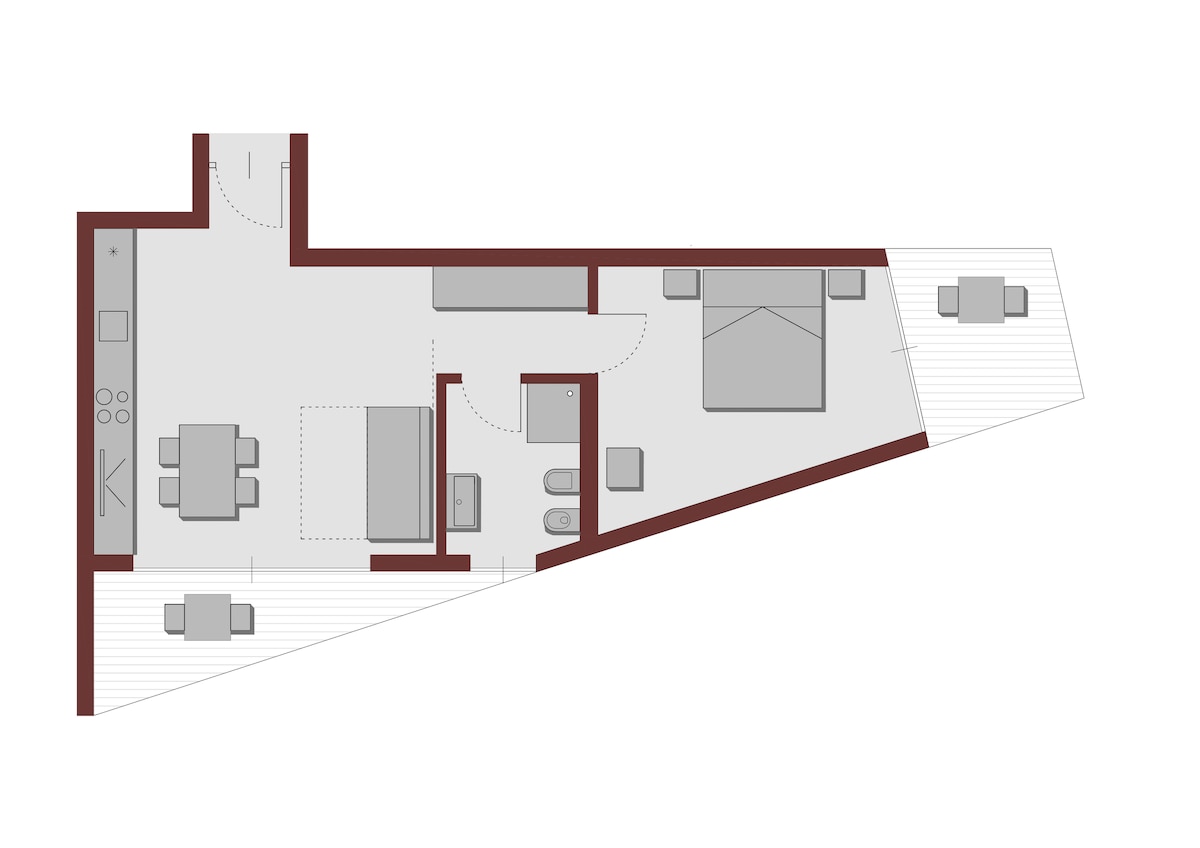 Alojamiento turístico con 2 habitaciones triples y cocina pequeña