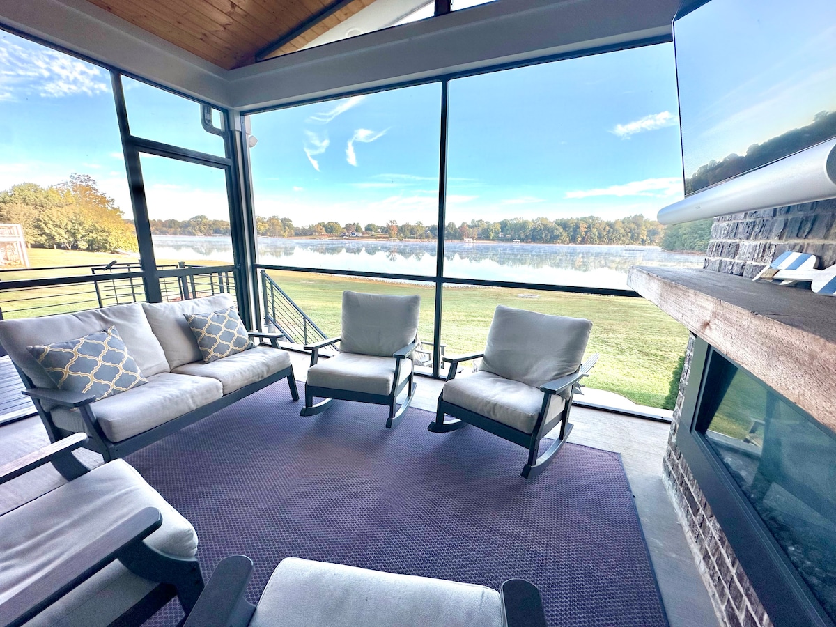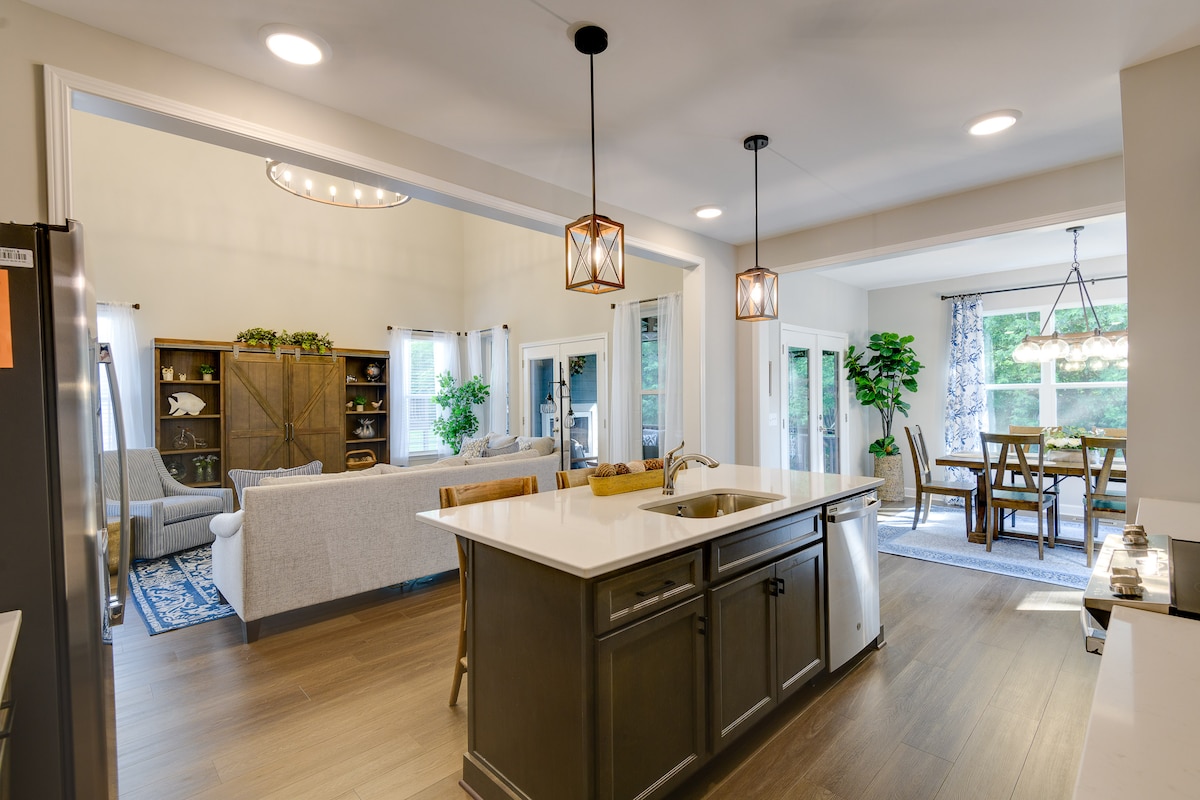 ¡Te damos la bienvenida a Lakefront Haven! Esta casa ofrece una mezcla perfecta de comodidad y lujo, proporcionando un refugio para una escapada a la orilla del lago. • Propiedad frente al lago + hermosas vistas • Jacuzzi • Fantástica piscina comunitaria para los días calurosos de verano • Pantalla en el porche con calefacción con TV y sistema de sonido. • Se proporcionan kayak, 2 tablas de paddle y peleton • Terraza con parrilla de gas Weber • Chimenea en el patio trasero con sillas • Cocina bien equipada • A menos de dos millas de Twin Creeks Marina. • Se puede caminar hasta la plaza del centro de la ciudad.