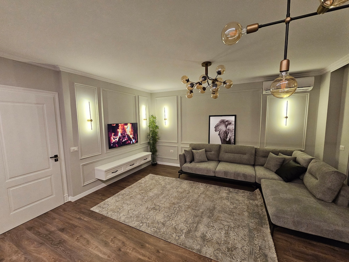 El apartamento ha sido concebido priorizando la elegancia, la sencillez y el máximo confort. Disfruta de tu tiempo con familiares y amigos, mientras contemplas las vistas que ofrecen los grandes ventanales que llenan las habitaciones de mucha luz natural. Su conveniente ubicación se suma a la agradable experiencia, a solo 10 minutos a pie de la plaza del centro de la ciudad en una de las nuevas zonas modernas de Tirana.